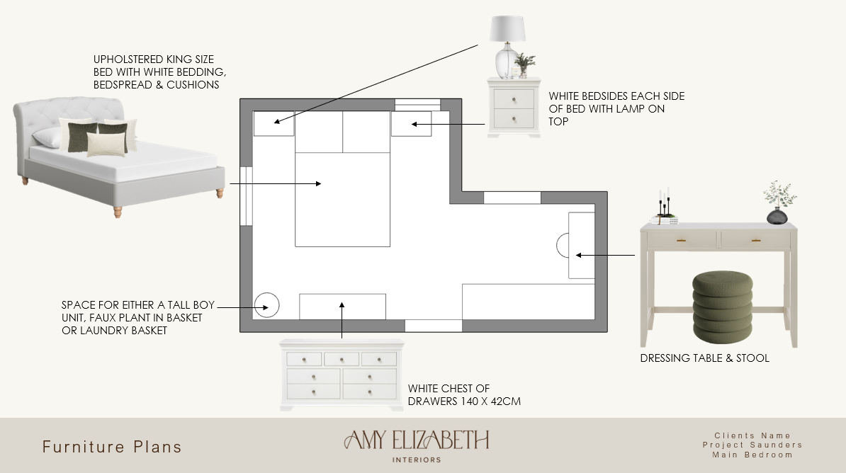 As with many new builds, the bedroom started as a blank white box. It was functional but lacking warmth, colour, or character. The clients wanted a serene, neutral retreat but weren’t sure how to achieve interest and depth without introducing bold colours.