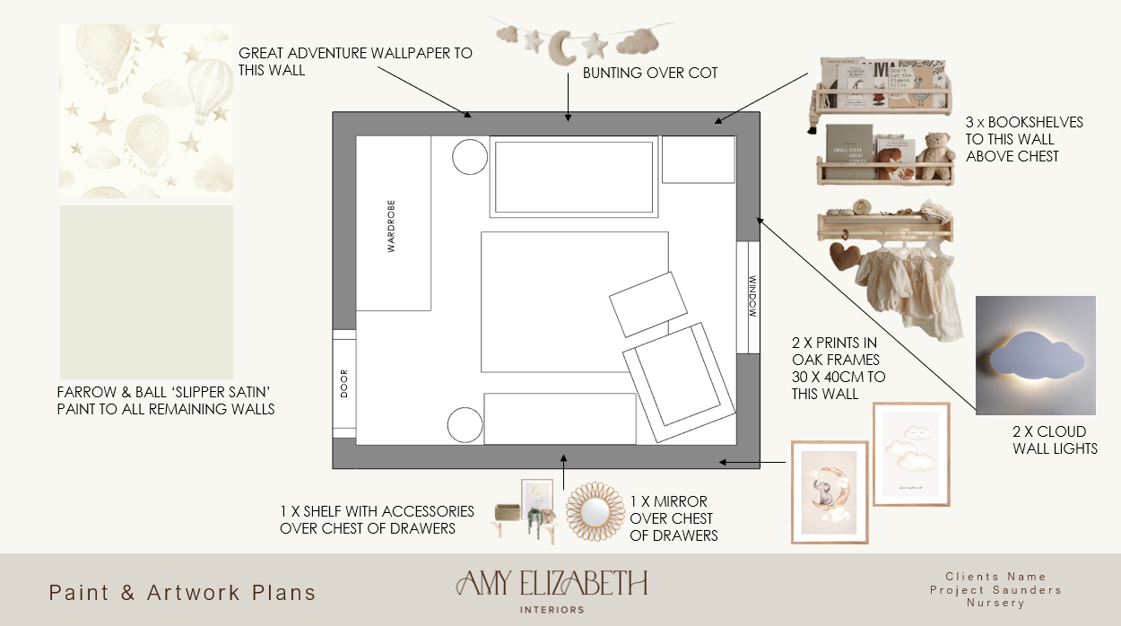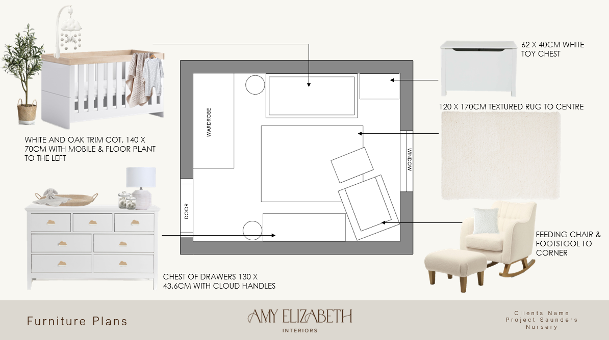 Expecting their first baby, my clients wanted to turn a spare room into a beautiful nursery. They had plenty of inspiration images saved but felt overwhelmed about where to start, from layout to pulling the look together.