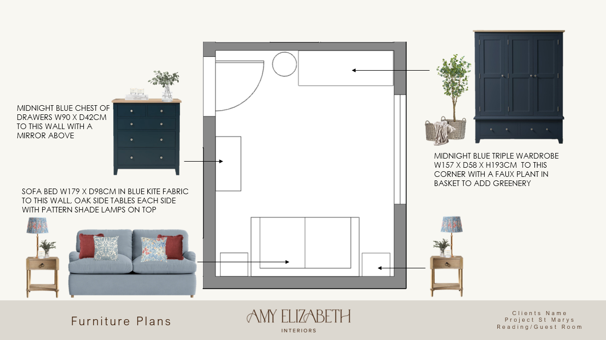 My clients wanted to remove an outdated over-bed cupboard and turn this into a peaceful, quiet reading room to relax in. The challenge was that it was also their only second bedroom, so they still needed it to work as a guest space when required.